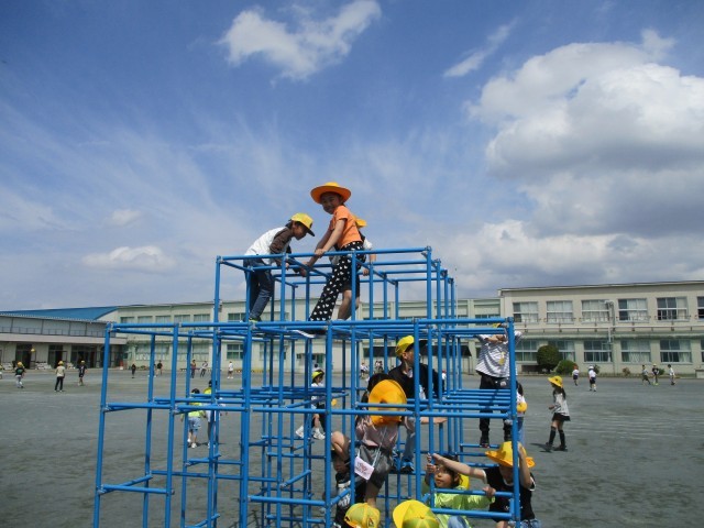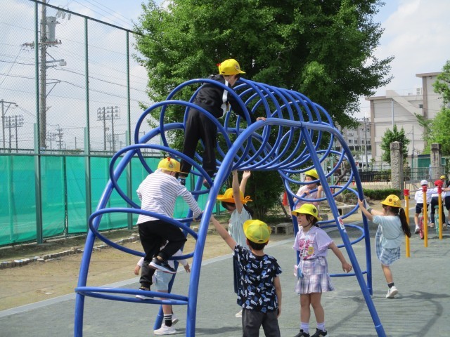 中間の休み時間は、たくさんの子が外遊びをして楽しんでいます。みんな笑顔ですね。