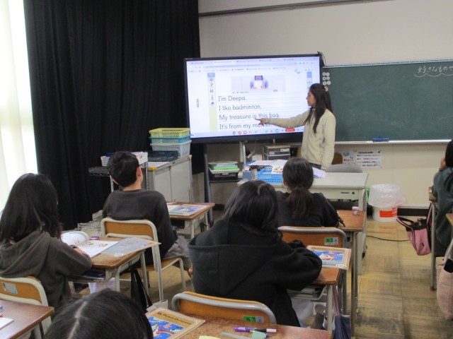 英会話で宝物の紹介文を作りました。会話でやり取りできるように慣れていきたいですね。