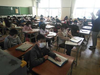登校した子どもたちは、久しぶりに友達と会えたことに喜んでいる様子でした。テレビ放送で行った学級担任の発表の時には、誰が担任の先生になるのかわくわくしながら聞いていました。
