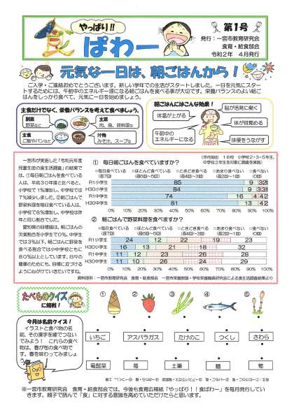 『やっぱり食パワー』の4月号です・新しい学年での生活がスタートしました。臨時休校中ですが、早ね・早起きを心掛け、朝ごはんをしっかり食べて一日を元気にスタートさせましょう。