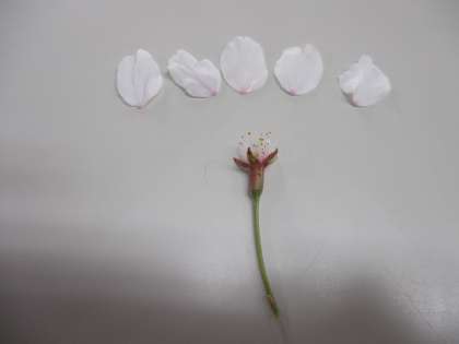 さくらの花びらの枚数は5枚です。花びらの形はハートです。(写真1)