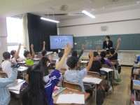 約1か月後には夏休み。今日は着衣泳を行いました。服を着たままプールへ入ると思うように体が動かない子もいました。今回の体験を忘れずに、水の事故に遭わないようにしていきましょう。