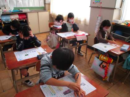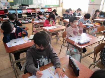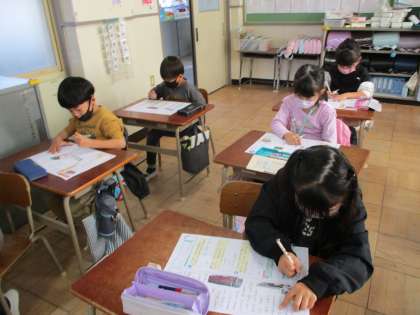 1年生も今月はテストに取り組んでいます。今日は、国語「じどう車くらべ」の読み取りテストでした。どの子も、じっくりと問題を読んで、テストに取り組んでいました。