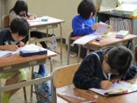 習った漢字のイラストに、思い思いの色を塗ってアート作品を作りました。鮮やかな色で塗られた漢字が、浮かび上がってきました。