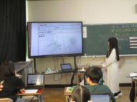 理科の授業では電池を使って電気の流れ方についての学習をしています。電池の向きを変えてプロペラの回り方の変化を観察していました。
