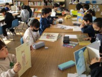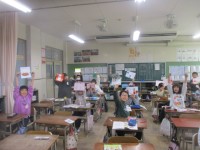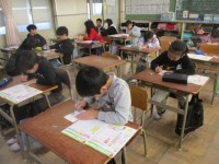 二重跳びの練習です。跳びながら空中で2回手をたたいたり、片手で縄を持ち、2回まわしたりするというリズムをつかむための練習をしました。