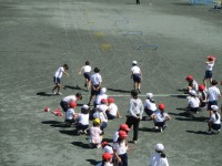 地震が起きたという放送が流れると、みんな素早くおさるのポーズで机の下に入ることができました。その後も、運動場まで静かに避難し、校長先生のお話を聞くことができました。命は一つしかありません。これからも真剣に訓練に取り組めるようにしたいですね。