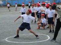 グラウンド工事も半分が終わり、一部使えるようになりました。久しぶりに運動場での体育ができました。今日はいろいろなダッシュをして体つくりをしました。