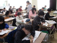 家庭科の時間、食物の三大栄養素について、表を見ながら学習しました。普段何気なく食べているものの栄養がわかり、食について関心を持つことができました。