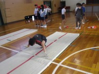 体力テストの20mシャトルランの測定をしています。少しでもよい記録が出るように頑張っています。