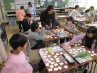 アルファベットのカードを裏向きにして、ペアで神経衰弱をしました。アルファベットに...