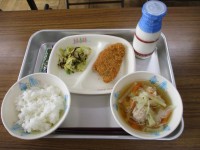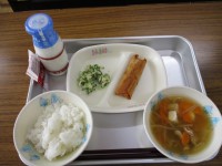 <今日の給食>中華麺 牛乳 野菜タンメン(汁) 春巻 チンゲンサイの中華和え...