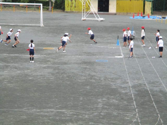 体育で、ハンドベースボールのゲームを行いました。審判は自分たちで行い、ルールをし...