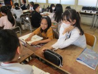 図書館の利用の方法が変わります。今まで返却は、本をボックスに入れるだけでしたが、2学期からは自分で元に位置に戻します。今日は、返却がスムーズにできるよう、分類番号で本を探すゲームをしました。
