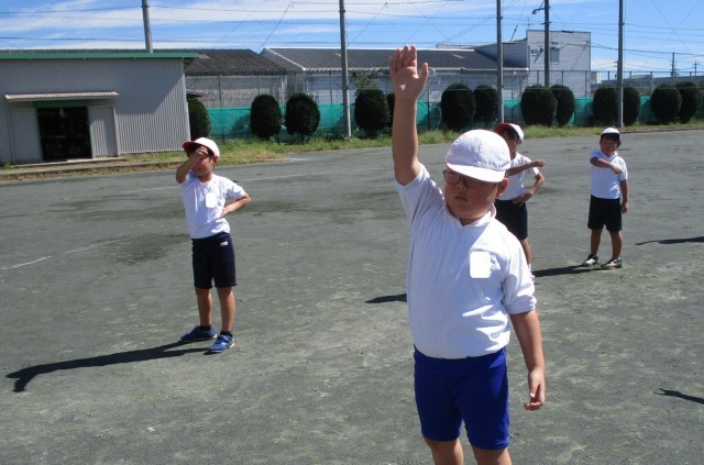 学年のみんなと一緒に運動会のおどりの練習をがんばっています。
