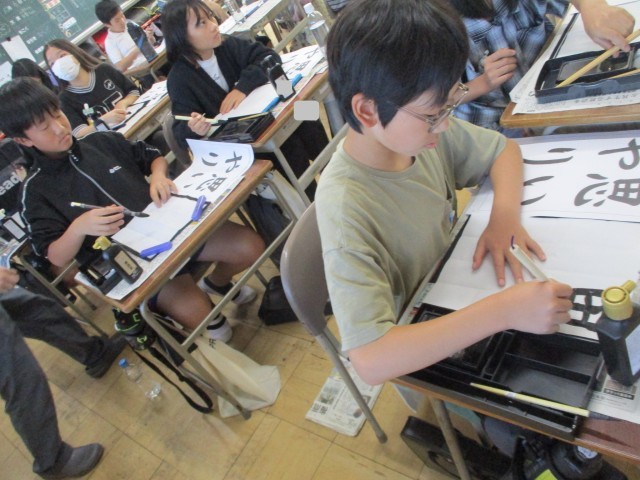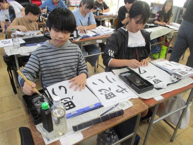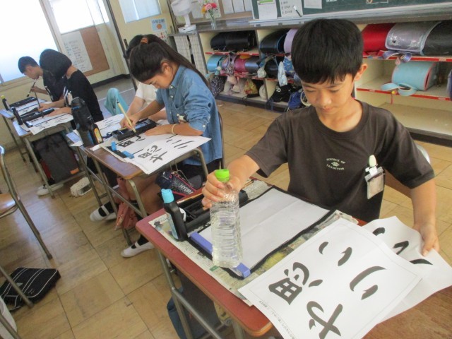 書写の学習で「思いやり」と毛筆で書きました。止めや書き順に気をつけて、書くことができました。