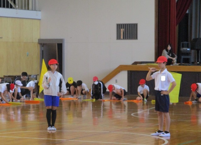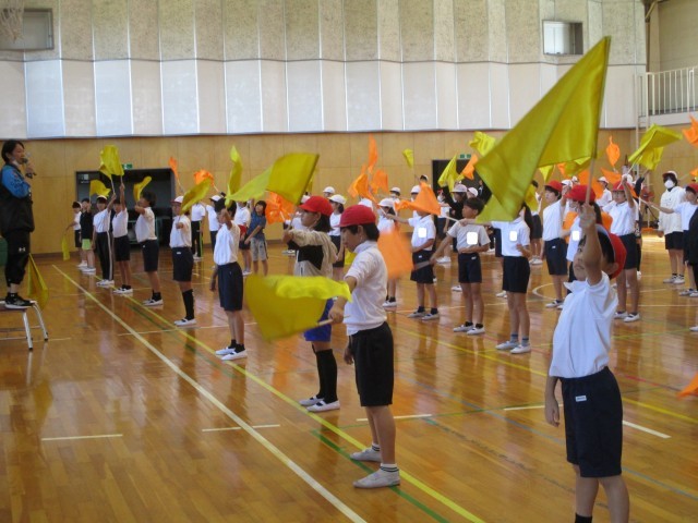 旗さばきが、日に日に上手になっています。みんなと息を合わせられるよう練習を積み重ねています。