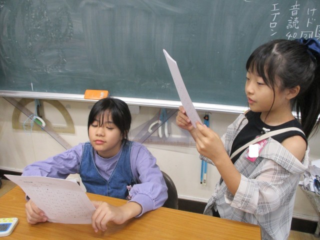 朝のフレッシュタイムには、音読み計算をペアで取り組んでいます。