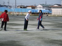 理科の「とじこめられた空気や水」の学習の一環として、水鉄砲をしました。水鉄砲をしながら、空気の時と水の時の手ごたえの違いを感じました。