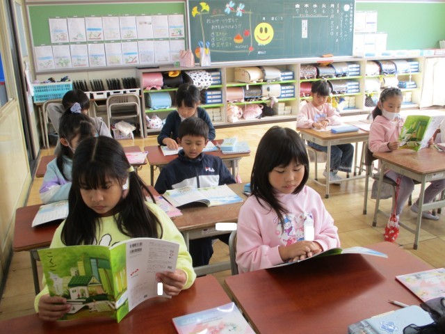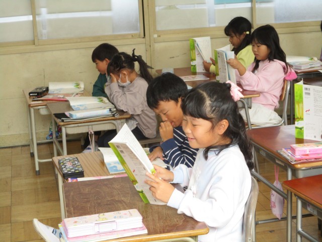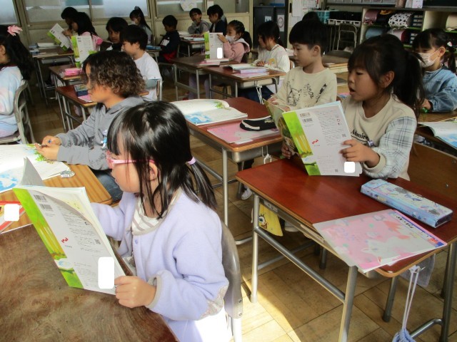 国語の「くじらぐも」の会話文を順番に読みました。内容に合わせた声の出し方を考えました。