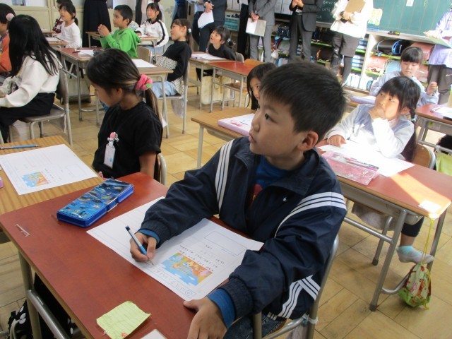 今日の算数は、先生たちの勉強のためにたくさんの先生方に見られての授業でした。丹陽中学校の先生もみえました。