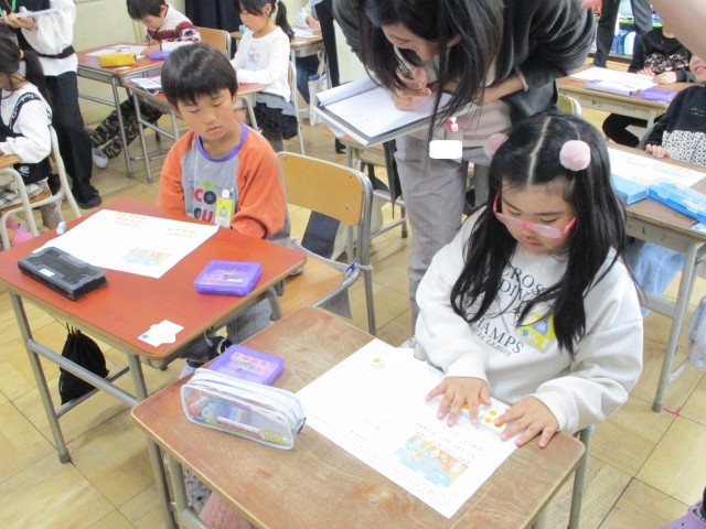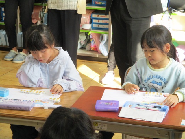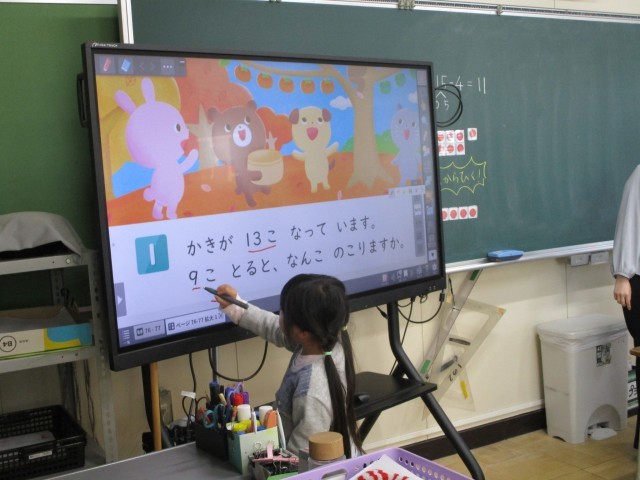 いつもと違う雰囲気での授業でしたが、子どもたちは一生懸命に、ひき算の解き方について数図ブロックを使って考えました。