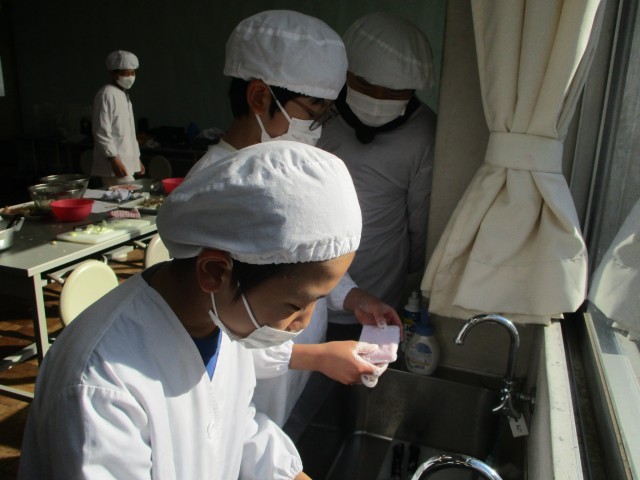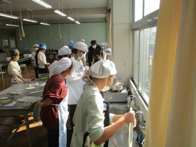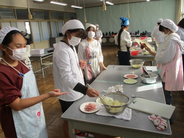 家庭科の調理実習では、みんなと力を合わせて、「ベーコンポテト」をつくりました。