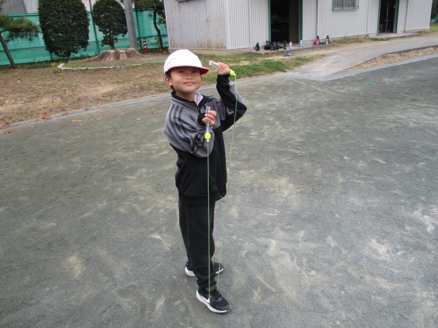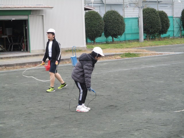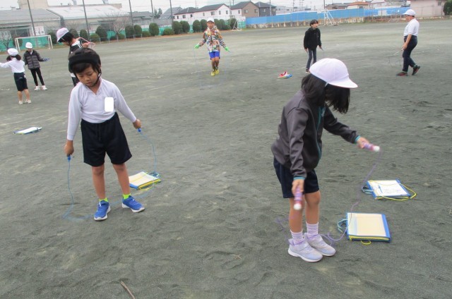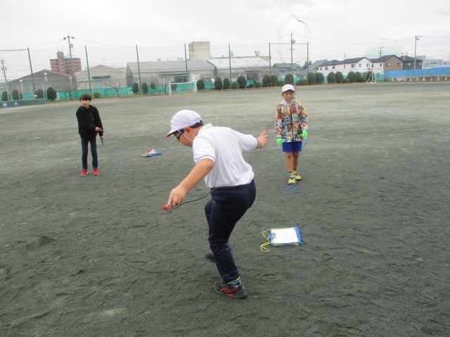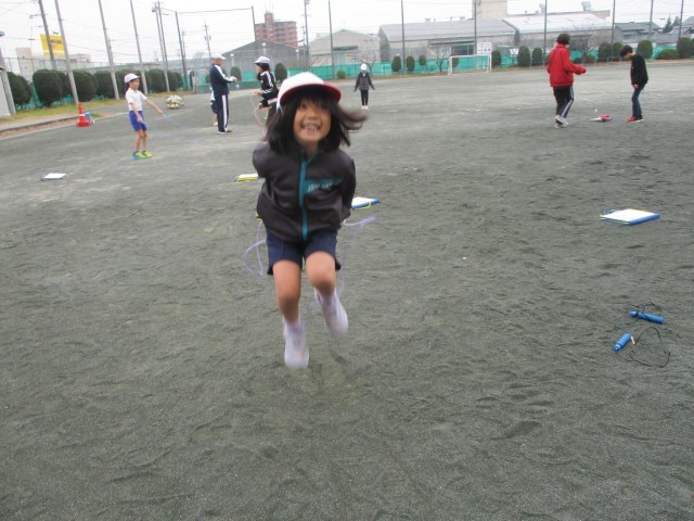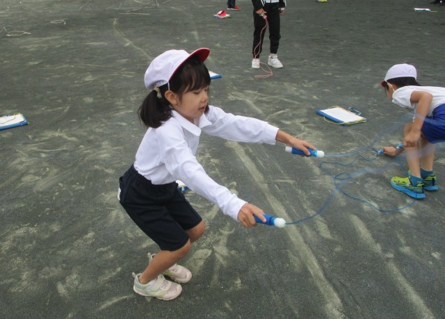 あじさいの合同体育では、なわとびをしています。なわとびカードを使って、どんどん技がステップアップしています。