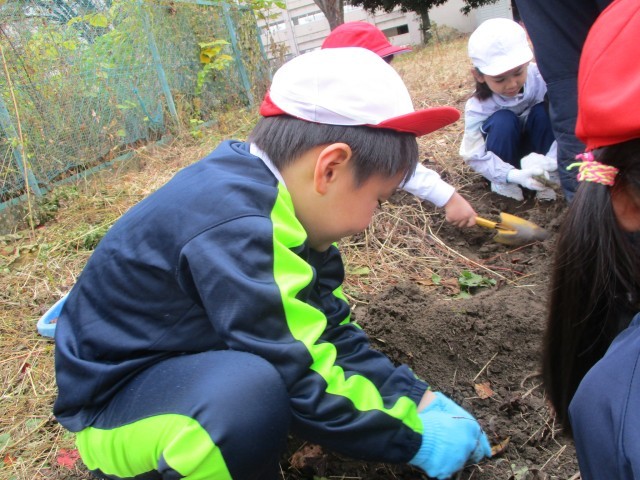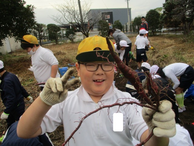 また、交流学年で、サツマイモほりをしました。おいもを、ほりおこすことができてニッコリです。
