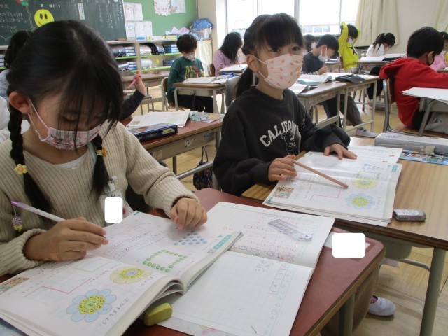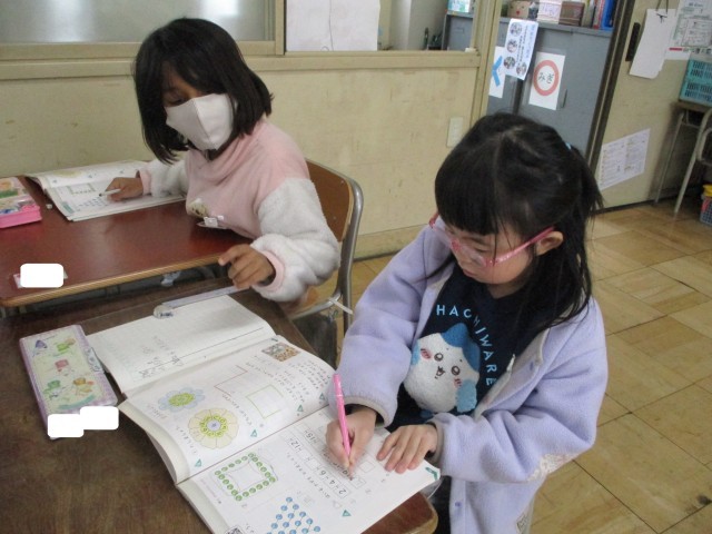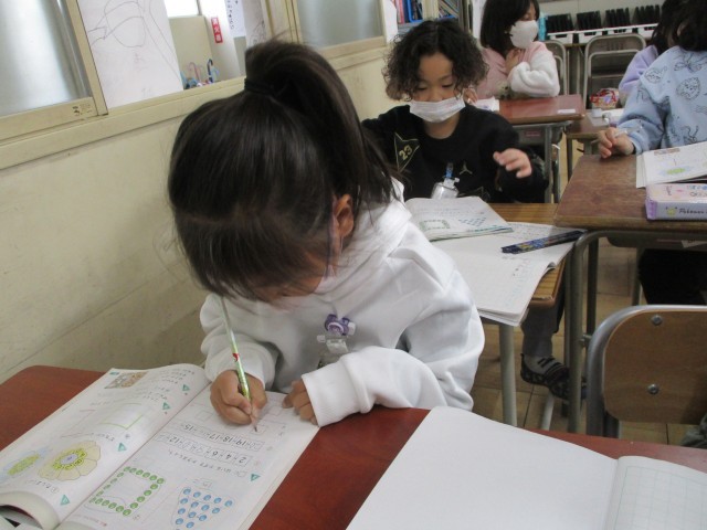 今日の算数でも、計算や数についての問題をたくさん解いて練習をがんばりました。