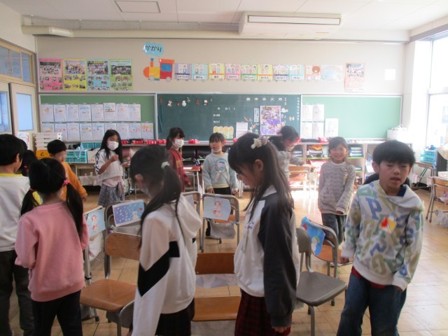 今日は終業式でした。全校で屋運に集まって、校長先生のお話や、冬休みの過ごし方についてのお話を聞きました。
