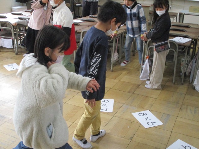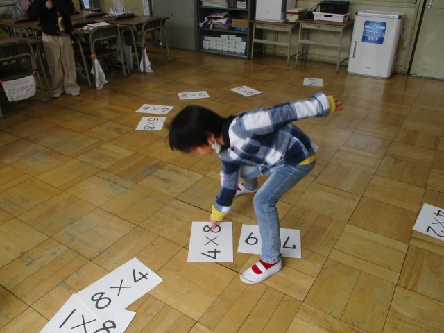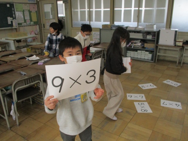 九九の学習のまとめの一つとして、「九九カルタ」をしました。