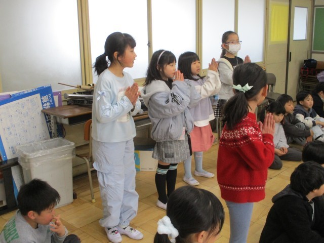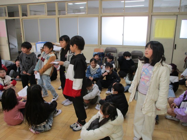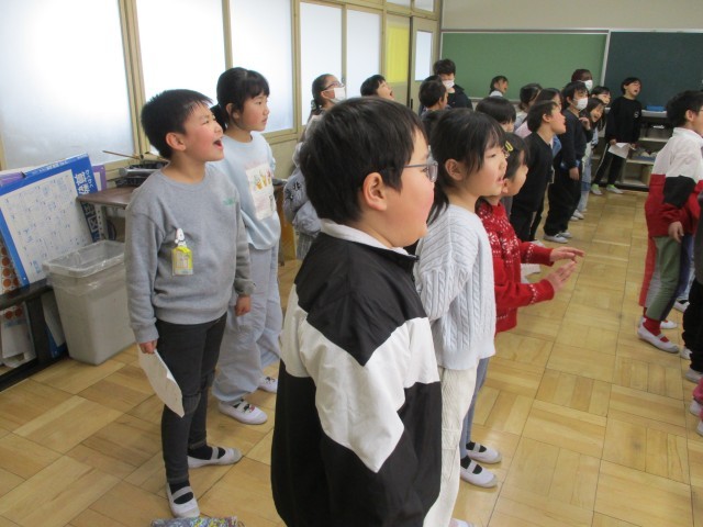 6年生を送る会に向けて、2年生みんなで集まって練習しました。