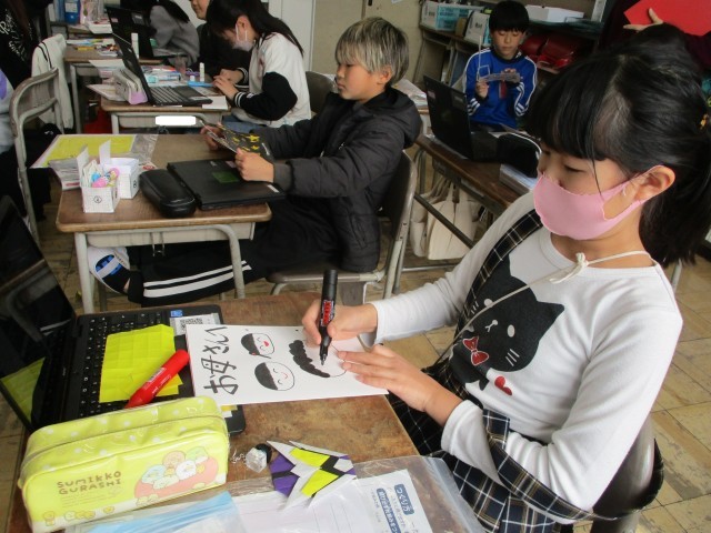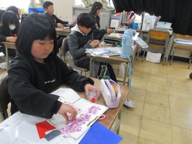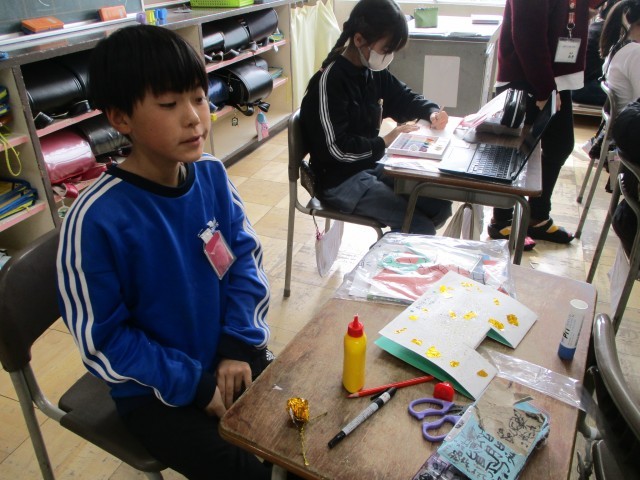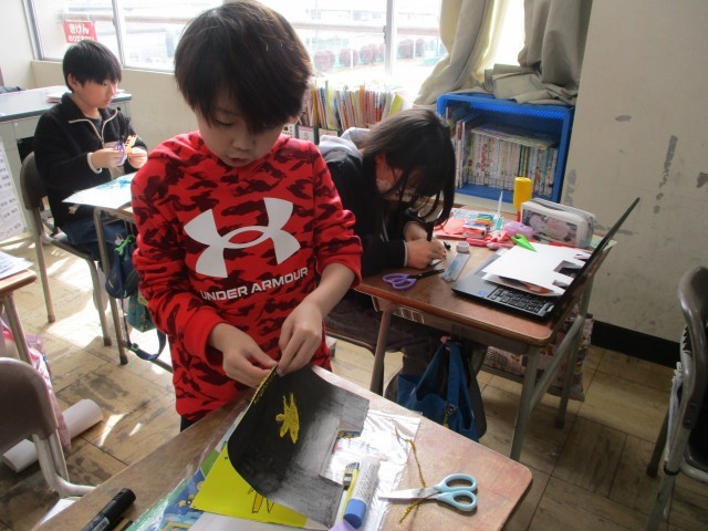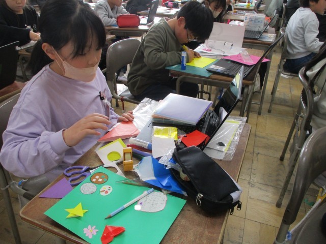 図工では、感謝の気持ちを表すカードを作成しています。一人一人の個性が光る作品ができています。
