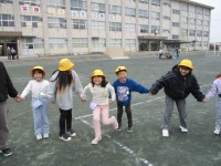 体育委員会主催のペア活動が運動場でありました。1・6年生、2・4年生、3・5年生のペア学年で、大きな輪を作り、「言うこと一緒、やること逆ゲーム」や「爆弾ゲーム」で楽しみ、たくさんの笑顔が見られました。