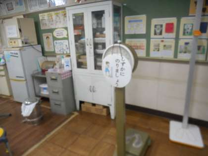 ほけんしつの せんせいが います せの たかさや からだの おもさを はかることも あります