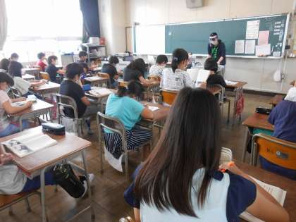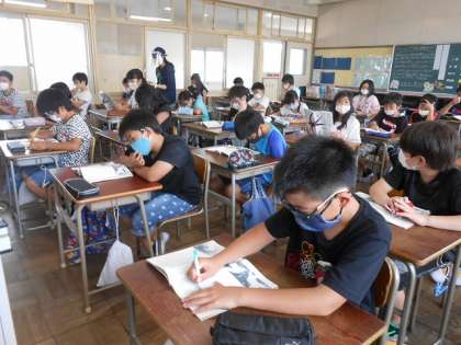先生の範読を聞きながら、 登場人物の心情の変化に注目して 読み進めます。