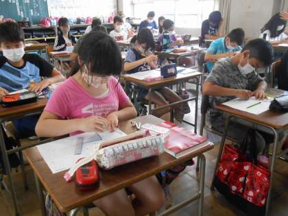 線対称について学習します。 線対称になっている図形の 対象の軸を探します。