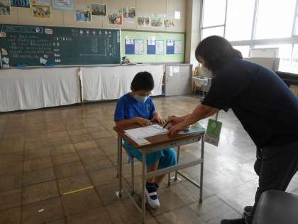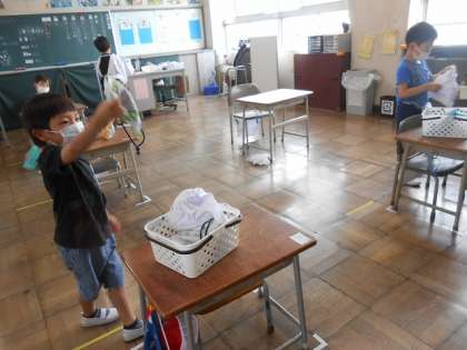 落ち着いて学習します。 低学年は、給食の準備を始めます。