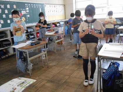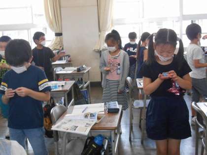 方位磁針の使い方を学びます。 「北は、どっちかな?」 「針が動くよ!!」