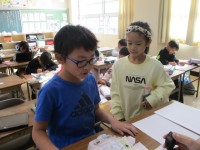 今日、2年生は校外学習で町探検に行きました。最初に稲荷山公園と稲荷山古墳を見学しました。稲荷山の古墳の上にある神社に上るとガスタンクや高速道路が間近に見えて「すごい、よく見える。」と声が上がっていました。