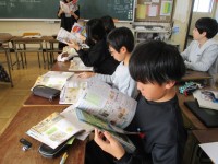 上の写真は1組です。英語の授業を行いました。What can penguins do well ?で答える勉強から、動物ができることを答えたり、尋ねたりしました。
