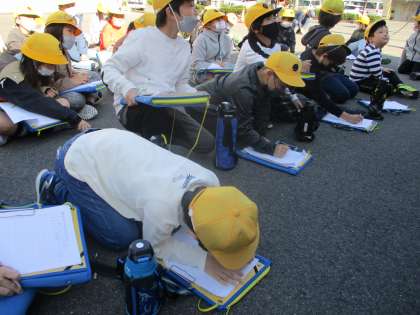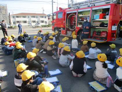 11.8 消防署に行ってきました!〜その1〜(3年生) 公開日 2022/11/08 更新日 2022/11/08 3年生 午前中に丹陽出張所へ消防隊員さんや、救急救命士さんの話を聞きに行きました。目の前の消防車や救急車に目を輝かせていました。 消防士さんの話を聞きながら、必死にメモをとっていました。事前に学習していきましたが、新たに知ることができた話も多くあり、学びが深まった一日でした。