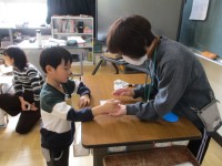 両手でぶら下がったり、「ぶたのまるやき」という技に挑戦したりして、鉄棒運動に取り組みました。
