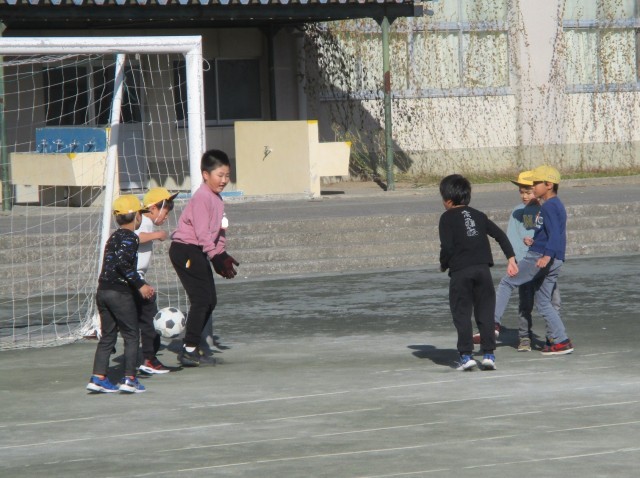 日差しが出ていて穏やかな日でした。子どもたちは、サッカーやバレーをしたり、遊具で遊んだりして友だちと笑顔ですごしました。