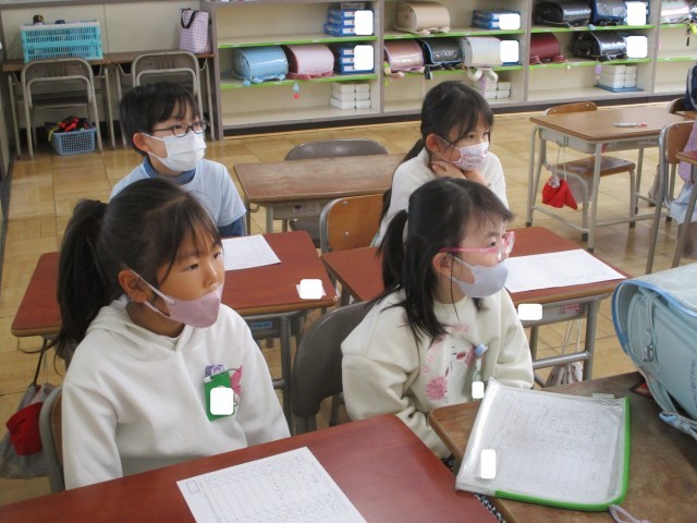 昨日に引き続き、読み聞かせボランティアの「おるもちっち」さんや保護者ボランティアさんによる読み聞かせがありました。楽しい絵本にふれさせていただいたり、お話を朗読をしていただいたりして、「この本、借りたい!」という声があがるなど、子どもたちの読書に関する関心も高めていただきました。本日もボランティアのみなさん、丹陽小の子どもたちのためにありがとうございました。