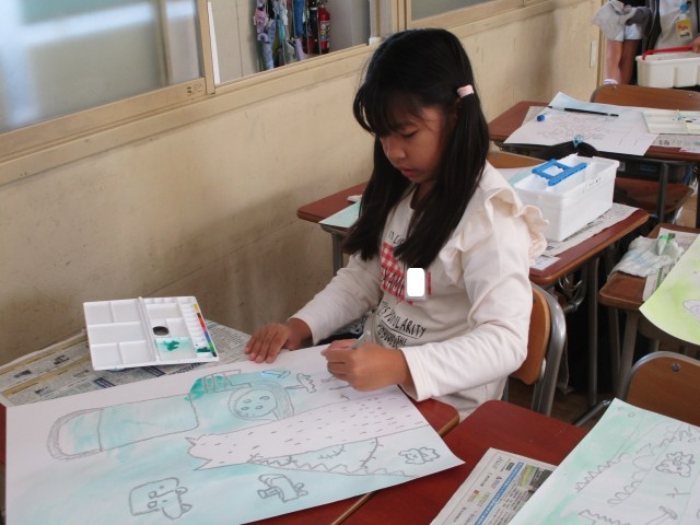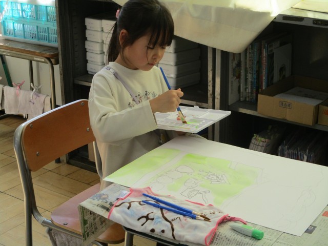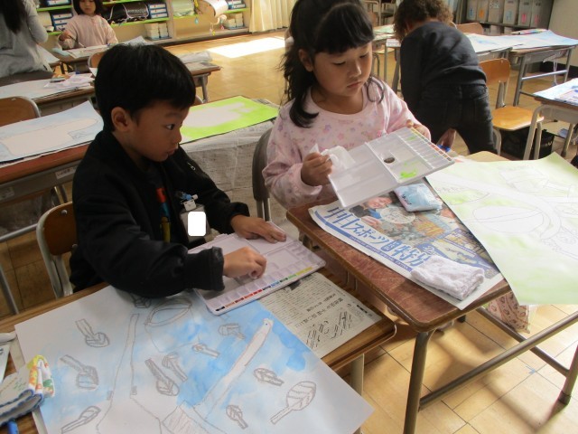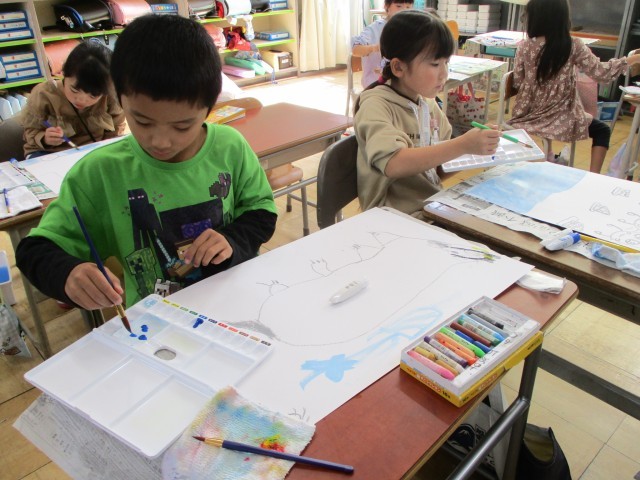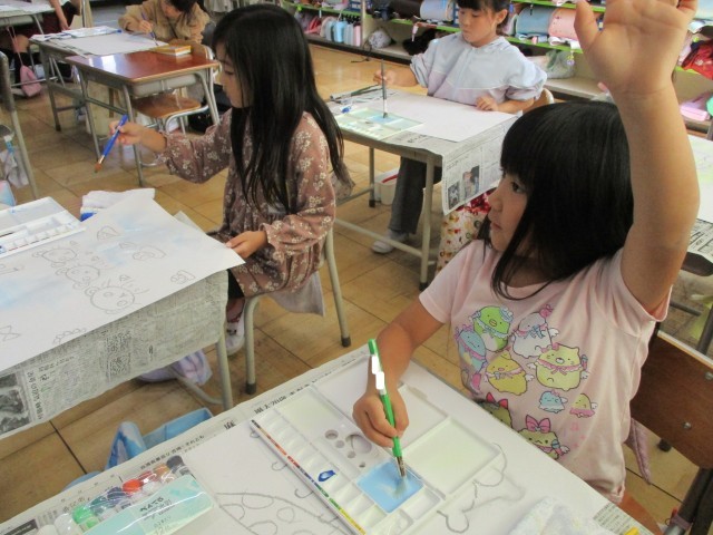 図工で絵の具を使いました。子どもたちは、「えのぐたのしかった!」と口々に言っていました。