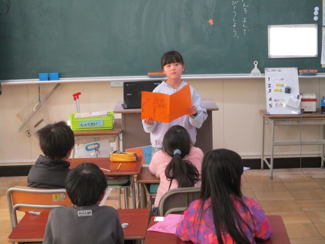国語の「しらせたいな、みせたいな」の学習で、自分が知らせたいオリジナルキャラクターの紹介文を作り、みんなの前で発表しました。