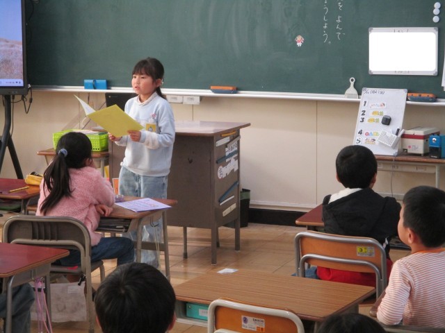 友だちの発表をしっかりと目を使いながら聞く意識ができています。とってもすてきな姿です。