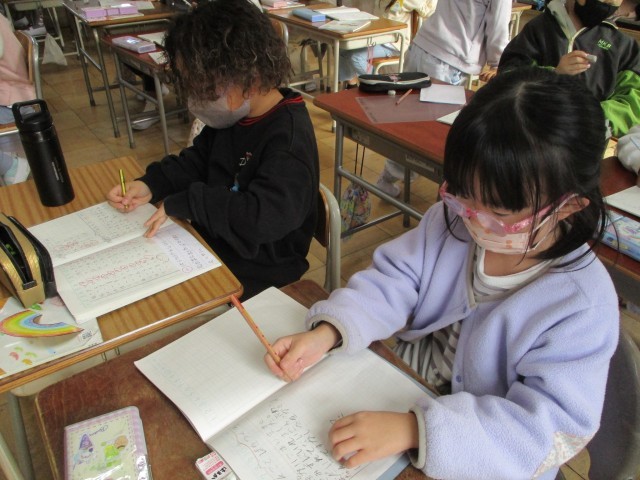新しく習った漢字の学習にも、みんながんばっています。小テストも点数よりも直しが大切です。子どもたちは、直しも丁寧に取り組んでいます。